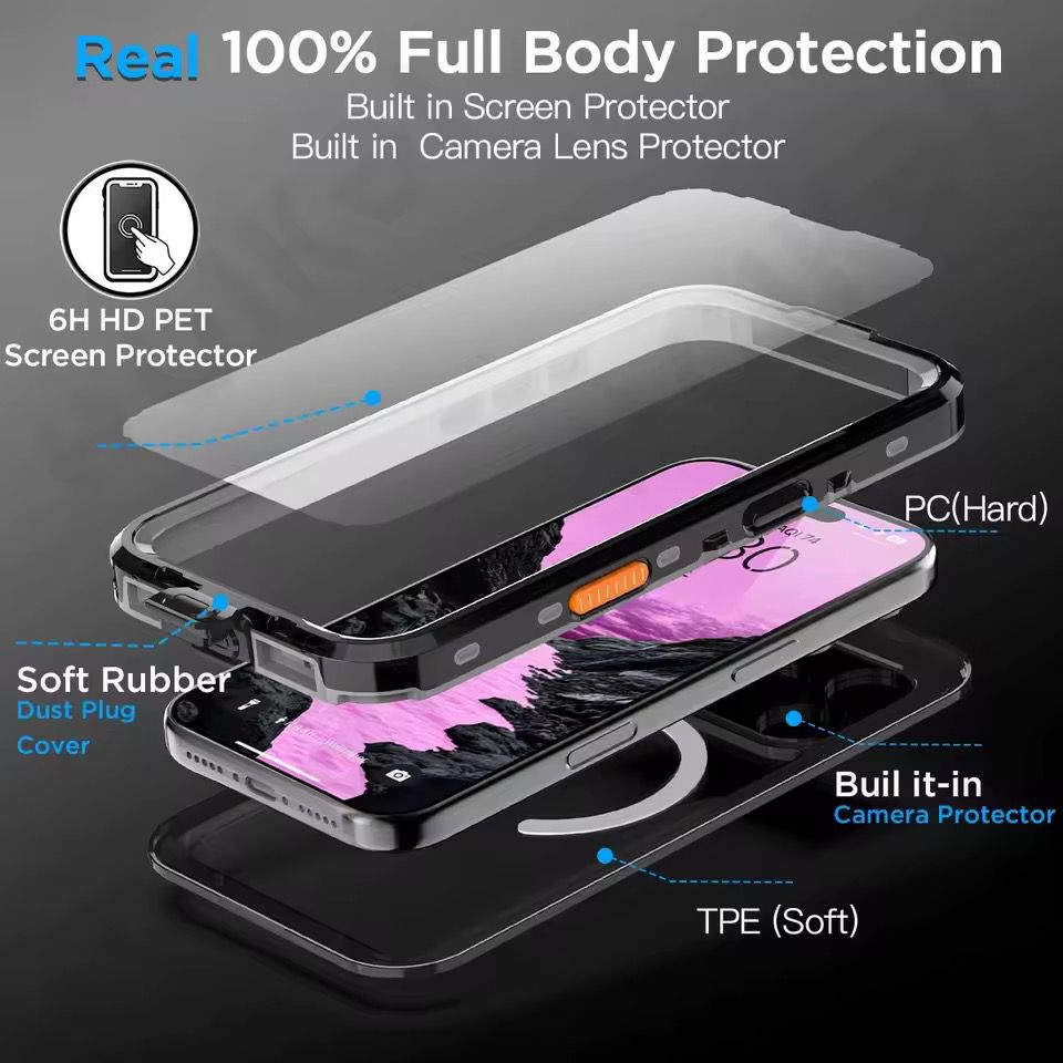 • Sellado hermético 100 %: protege tu iPhone contra agua, arena, polvo, nieve y golpes.